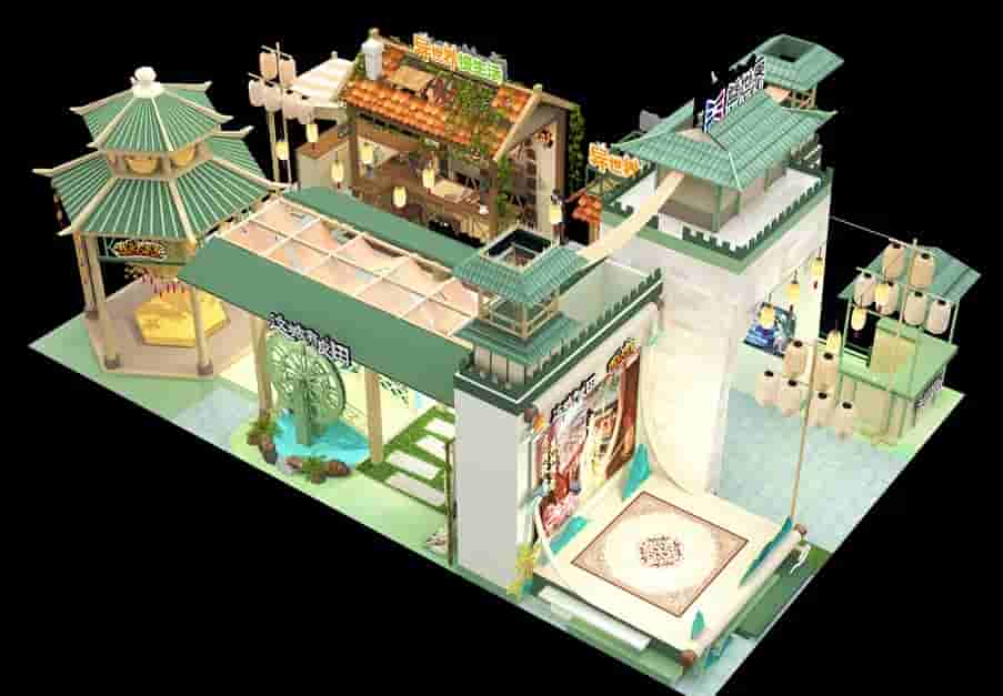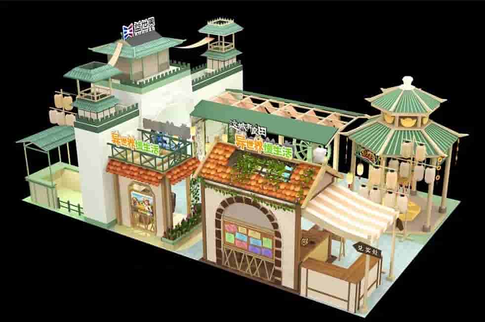 有别于过往BTOB展区的科幻简约,和2023年特色古风游戏市集的精致雅韵,今年的益世界展台兼具烟火气和奇幻色彩,