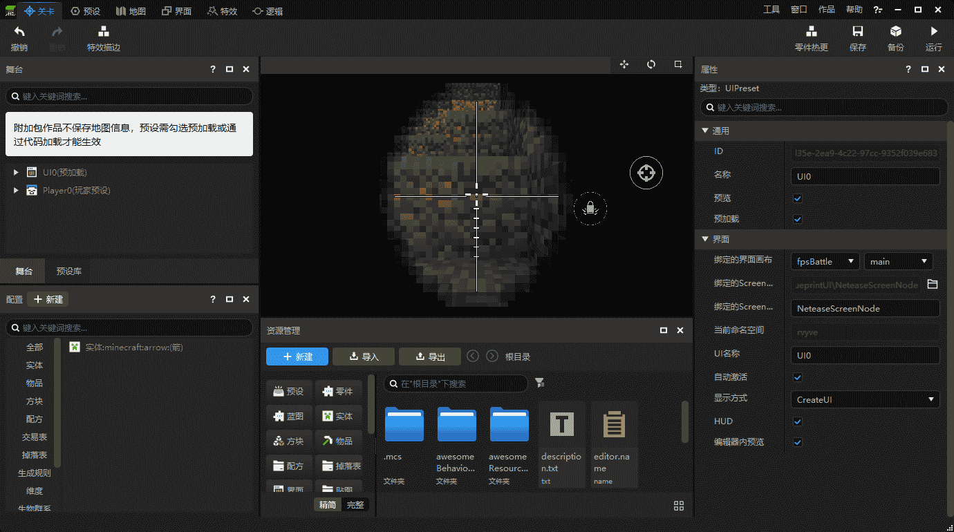 同时我们移除了界面文件和图片的两个资源管理窗口,将其替换为通用的资源管理器,并且资源管理器中的界面文件现在会显示界面的截图。