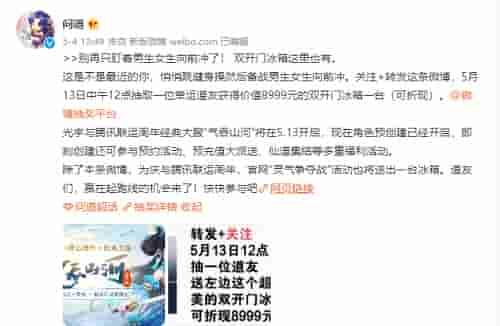 【微博抽奖】微博转发问道置顶微博,13日中午12:00开奖,看看价值8999元的双开门冰箱花落谁家,还没转发的抓紧了!