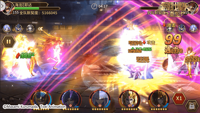 我方阵容:白羊座·贵鬼、神圣双子座·撒加、北欧圣女·希露达、神圣水瓶座·卡妙、冥衣·撒加