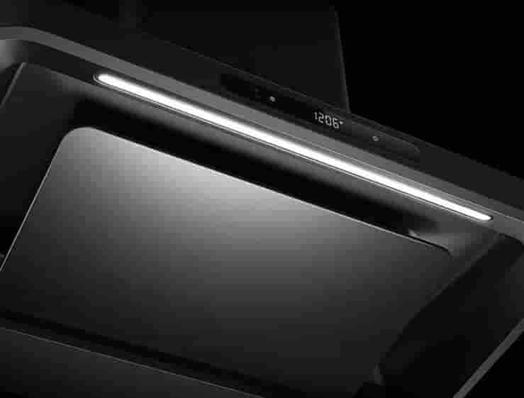 设计方面,S10吸油烟机融合了顶吸和侧吸烟机的精髓,相对传统欧式烟机,其进烟口下移了115mm,使得吸烟效果更佳。该产品还新增了时间显示功能,方便用户在烹饪过程中随时查看时间。同时,580mm的超宽域照明灯提供了更广阔的光源覆盖面积,让烹饪过程更加明亮。