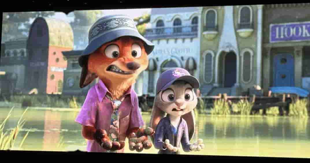 迪士尼还展示了狐尼克和兔朱迪前往沼泽度假村的场景。在那里,河马群在水上滑梯上尽情嬉戏,海狮们则在进行精彩的杂耍表演。然而,蛇盖瑞将在动物城制造混乱,引发全城恐慌,迫使这对黄金搭档再次携手展开追捕行动。
