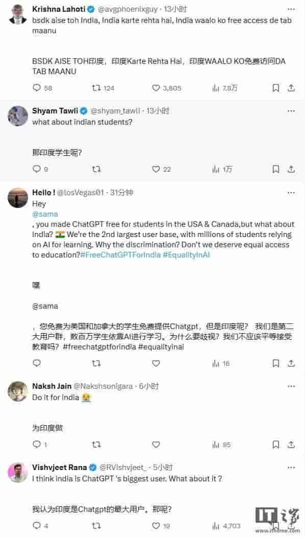 ChatGPT Plus五月前惠及美加大学生,印度网友直呼:何时轮到我们?