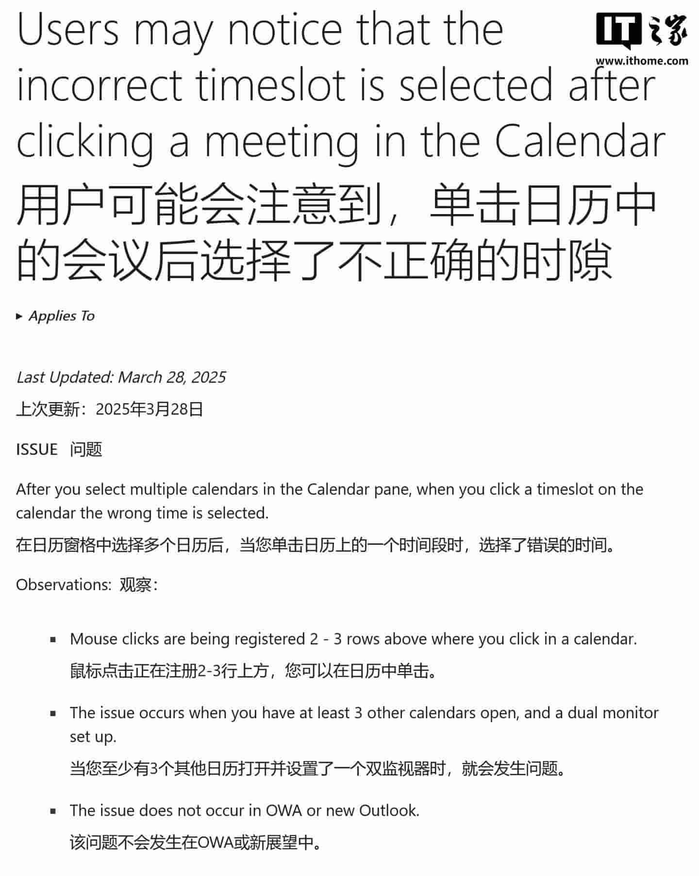 微软Outlook日历故障频发:多日历空白、时间错位等问题待解