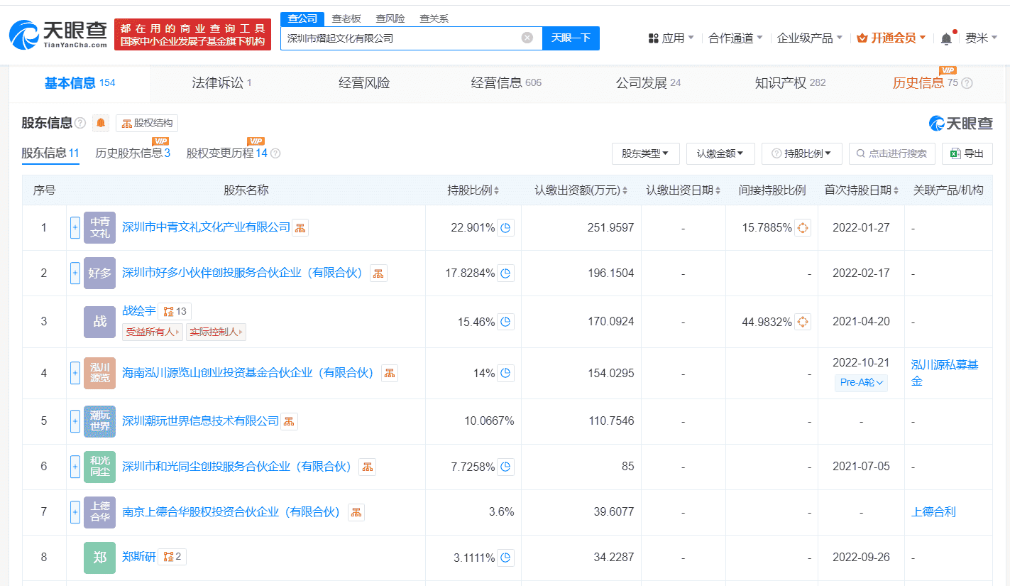 深入探究此次合作的背景,据天眼查信息显示,Letsvan品牌背后关联的公司为深圳市熠起文化有限公司,这家公司成立于2020年11月,法定代表人为战绘宇,注册资本约为1100万元人民币。其经营范围广泛,涵盖了网络技术服务、网络与信息安全软件开发以及电子元器件与机电组件设备的销售等多个领域。公司的股权结构显示,深圳市中青文礼文化产业有限公司、深圳市好多小伙伴创投服务合伙企业(有限合伙)以及战绘宇等人共同持有股份。