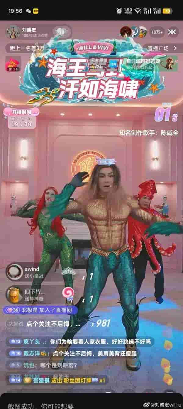 近期,知名艺人刘畊宏在抖音平台的一次特别引发了广泛关注。他身着海王角色扮演的服装,在间内带领观众跳操,却意外遭遇了中断的情况。
