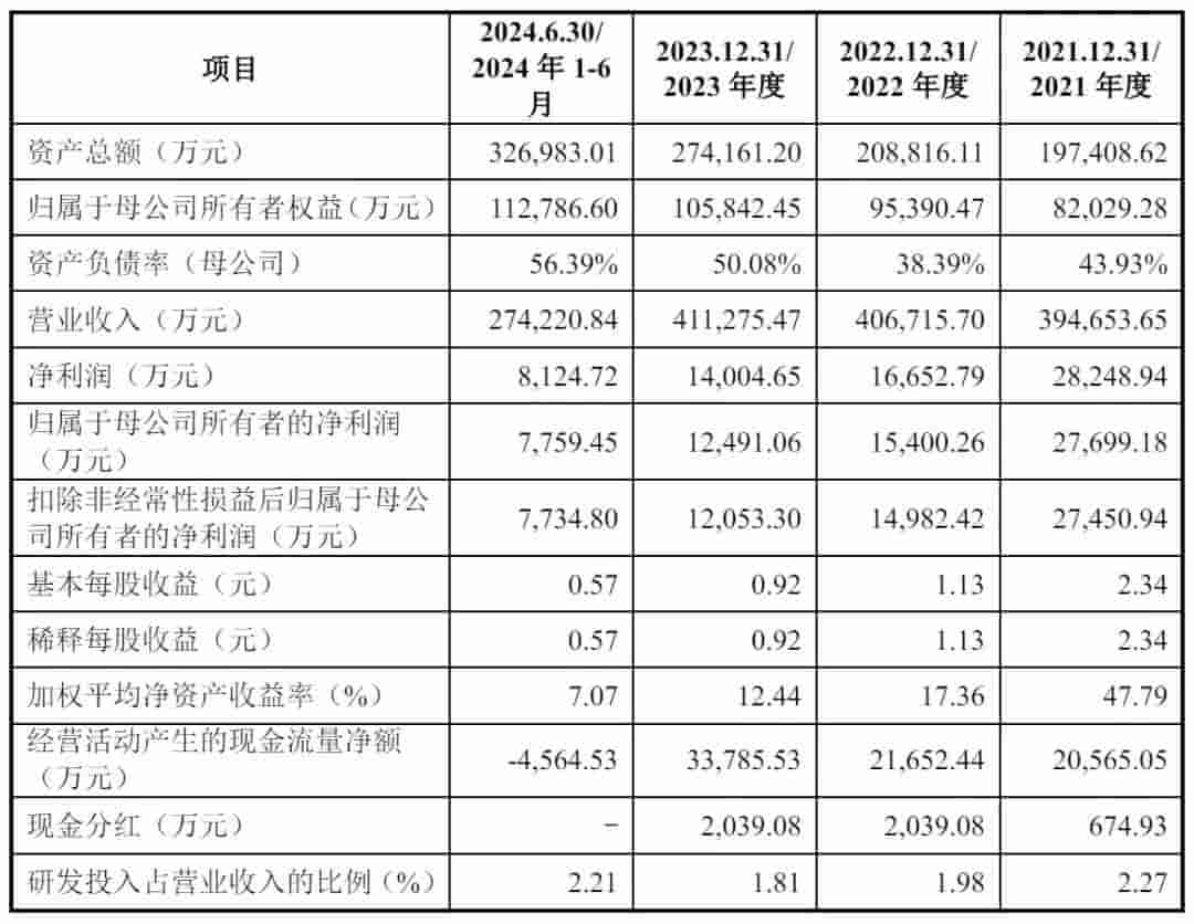 从财务数据来看,海阳科技近年来保持了稳健的增长态势。招股书显示,公司在2021年至2023年期间,营业收入分别为39.47亿元、40.67亿元和41.13亿元,净利润则分别为2.82亿元、1.67亿元和1.4亿元。进入2024年,海阳科技的增长势头依旧强劲,上半年营业收入已达27.42亿元,净利润达到8124.7万元。