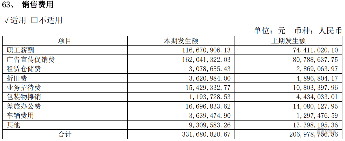 然而,会稽山业绩的增长并非没有代价。报告指出,公司2024年的销售费用大幅上涨了60.25%,达到3.32亿元。其中,广告宣传及促销费用更是较上一年度翻了一番。为了应对营业成本上升对利润的影响,会稽山与古越龙山均选择了提价策略,但这一举措能否有效增加业绩仍存在不确定性。