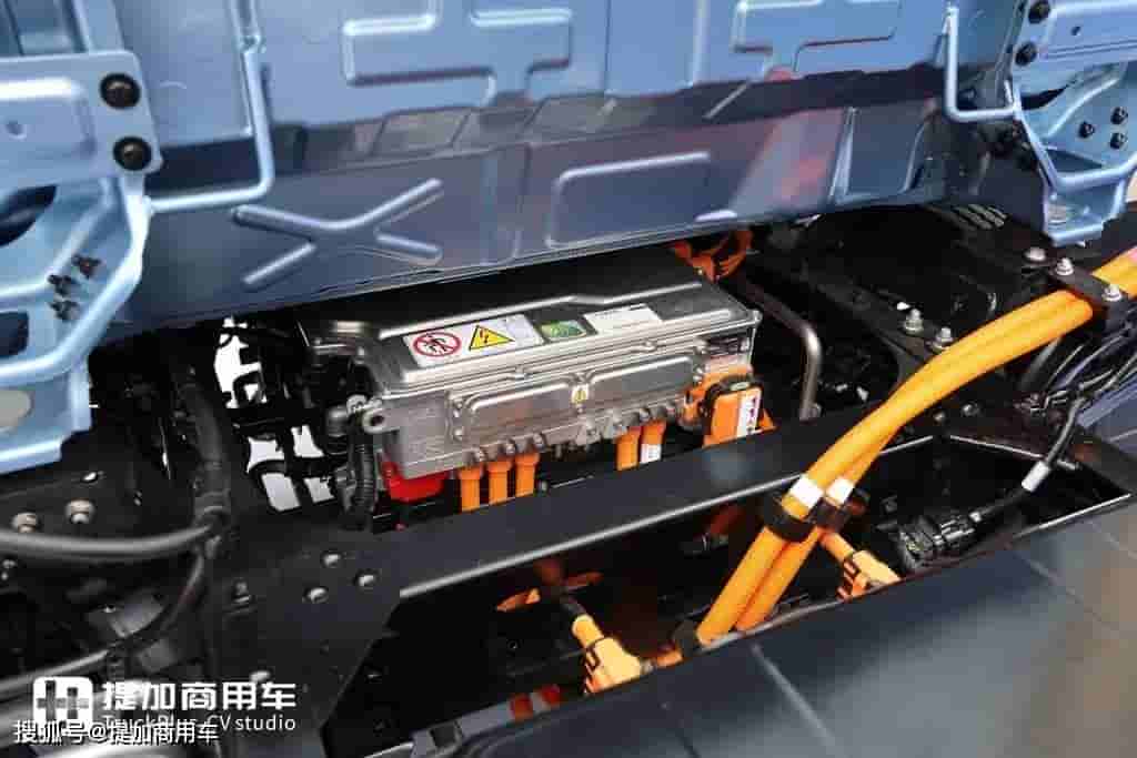 在电池布局上,宇通T5神行176也进行了创新。不同于市面上其他车型将电池单包布局在驾驶室底部或尾部,宇通采用了上下堆叠的两个单包,均置于底盘腹部中置的设计。这种设计不仅降低了行驶重心,改善了自重和集成设计,还避免了过多占用大梁空间,为用户提供了充足的改装冗余。