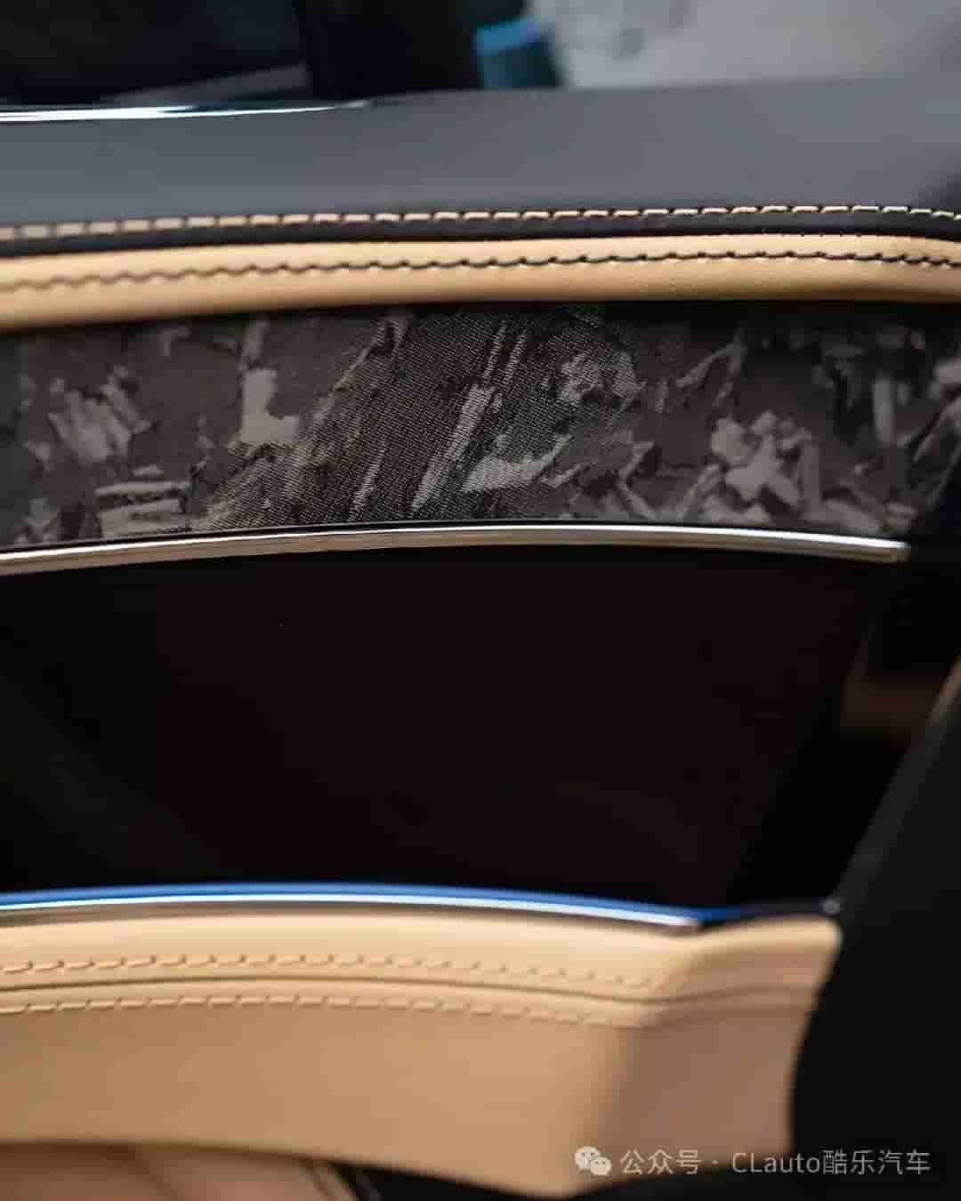 内饰方面,迈莎锐同样进行了精心改装。座椅和车门内饰板采用了浅棕褐色皮革包裹,营造出一种温馨而豪华的氛围。车门内饰板和仪表板上则点缀着锻造碳纤维饰件,进一步提升了内饰的质感。迈莎锐还换上了自家品牌的安全带和新的脚垫,并对方向盘的形状进行了微调,使得驾驶体验更加出色。
