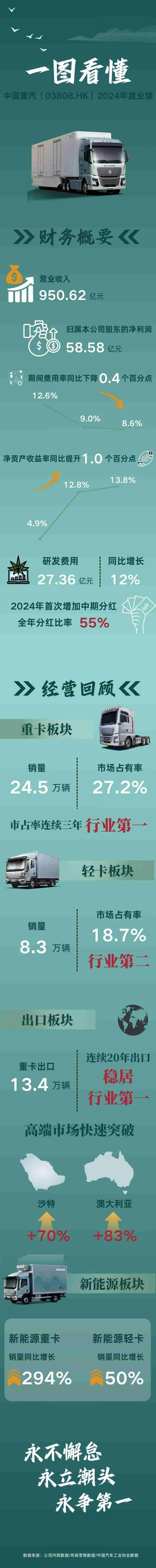 中国重汽2024年成绩单:营收近千亿,重卡销量市占率三连冠!