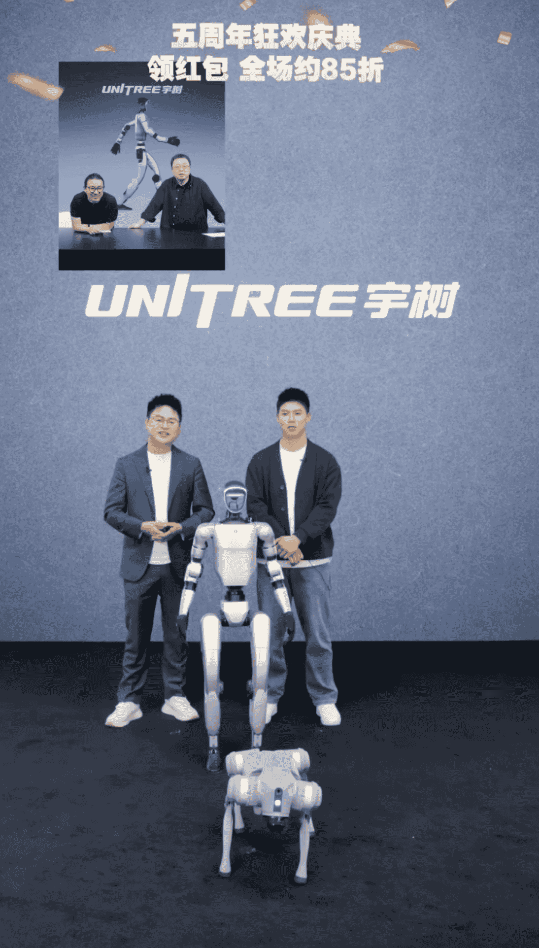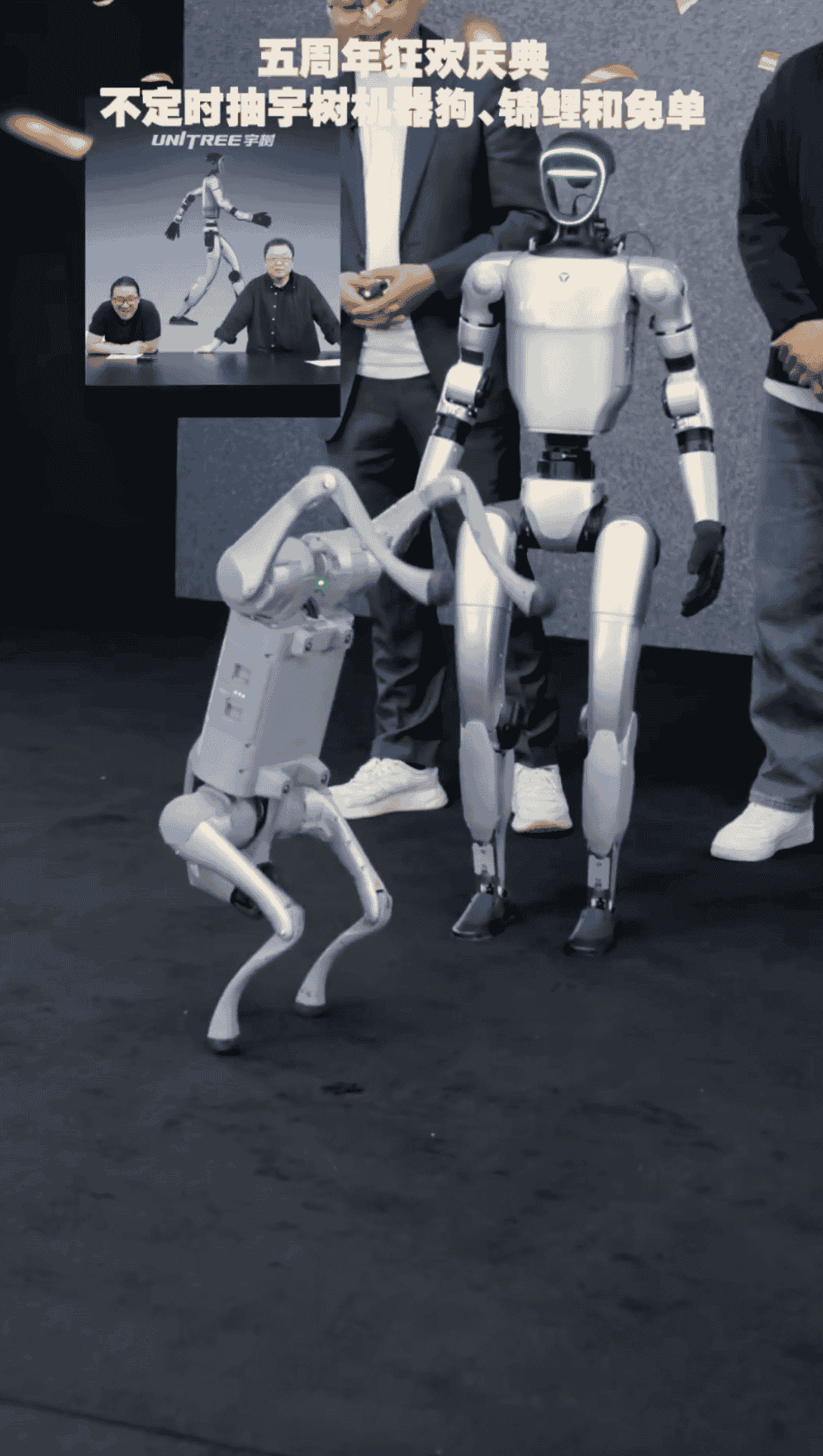 在过程中,宇树机器人G1以拟人化的方式介绍商品,同时带货宇树科技的GO2机器狗,起售价为9997元。G1在讲解产品时,一旁的机器狗则展示了握手、拜年、跳跃等多种动作,为观众带来了全新的观看体验。