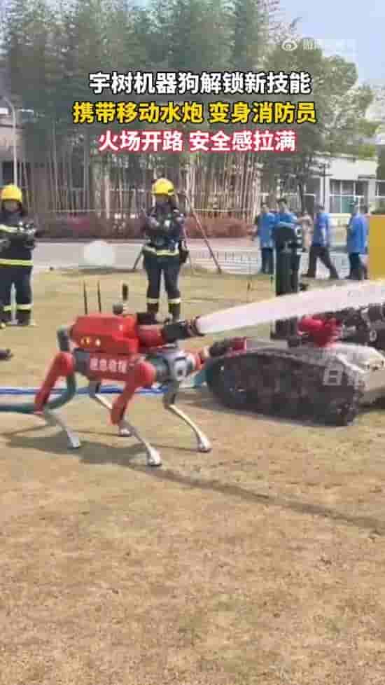 这款名为宇树的机器狗,在3月26日的演练中大放异彩。它被特别设计为能够携带移动水炮,为消防员在火场中开辟出一条安全通道。这一创新应用,无疑为消防员在危险环境中的作业提供了强有力的支持。