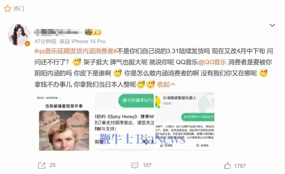 QQ音乐回应专辑发货慢:别催,催了更慢?网友直呼被内涵