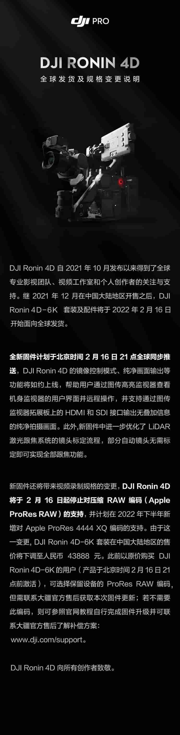 然而,这一“白菜价”授权的具体原因目前尚不明朗,引发了诸多猜测。回顾历史,大疆曾在2022年2月宣布Ronin 4D电影机停止支持Apple ProRes RAW编码,有传闻称这是由于与电影机制造商RED在RAW专利上产生了冲突。