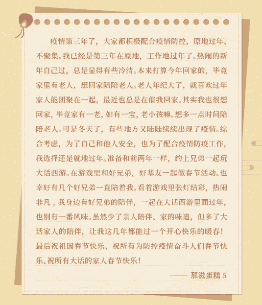 暖春同行江湖三界,暖心如故大话兄弟!每一年,兄弟们都会给《大话西游2》带来不同的感动和惊喜。今年,《大话西游2》在长安庙会的云灯会里,收获了无数兄弟们的积极投稿,承载了无数属于大话人的真情和记忆!