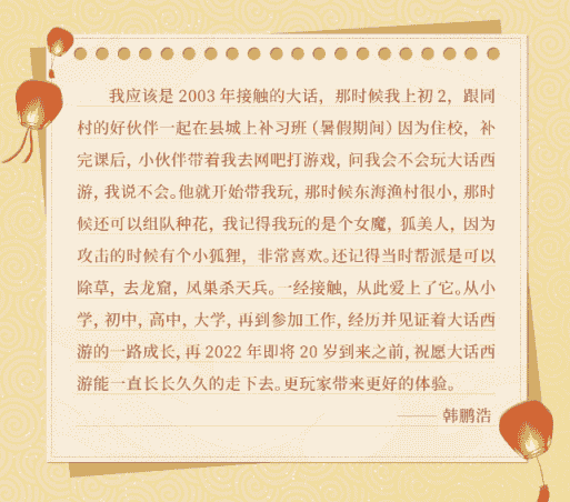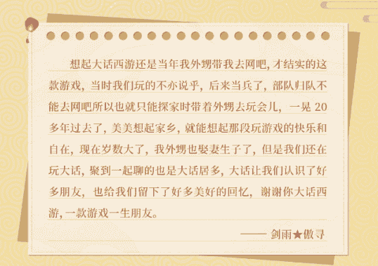 在这里,有人说起了刚玩大话的岁月,那年的懵懂成为了今日珍贵的回忆;有人聊起了通过游戏认识了许多朋友,从游戏到现实一路同行;有人说起了在游戏里的成长,在生活里的成长……时光会变,万物会变,不变的从来都是那份发自心底的真情!