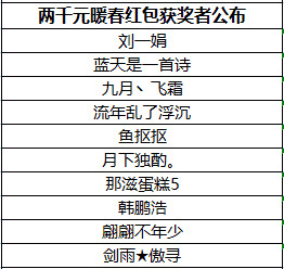 恭喜以上玩家,获得了本次活动的奖励,我们将以电话形式进行联系发奖,请各位获奖玩家注意查收!