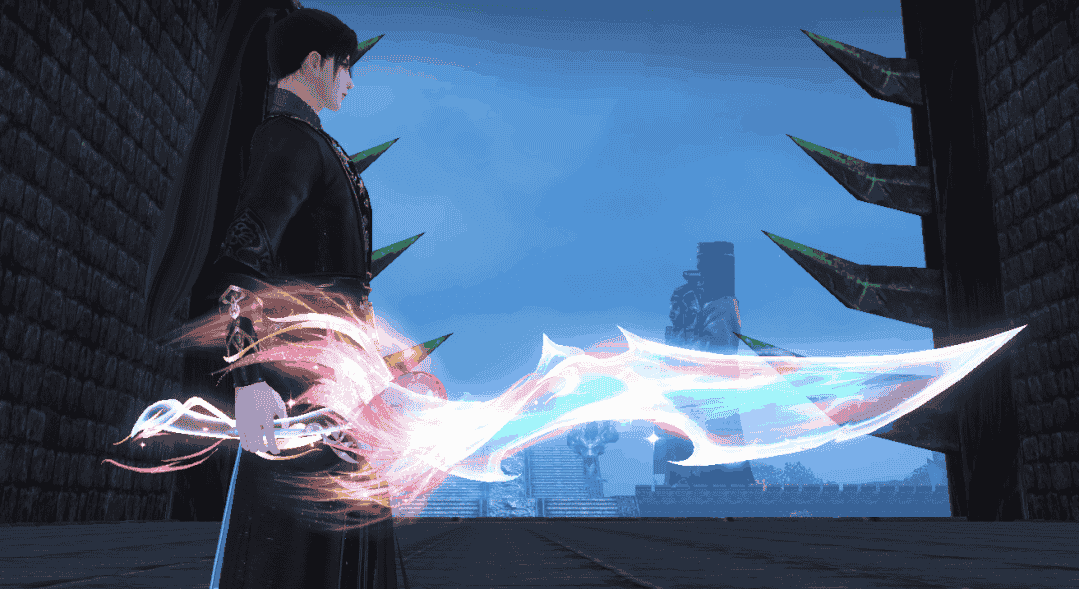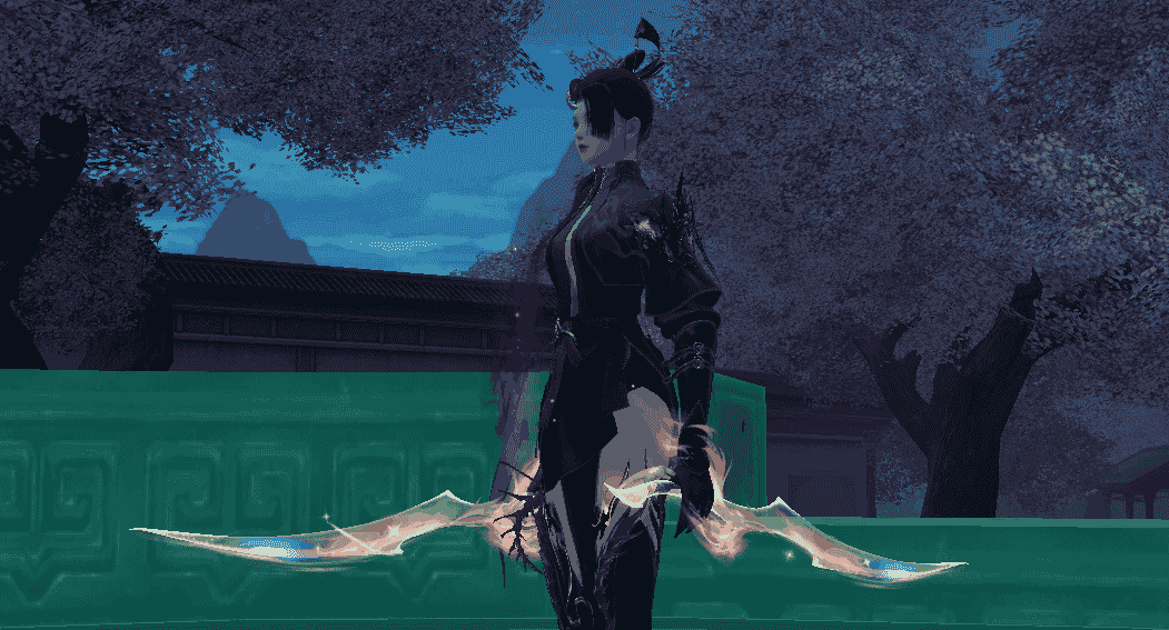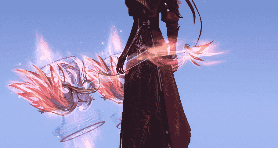红鸾照影双刃犹如鹰爪一般锐利且流线感十足,只要是被它盯上的猎物,就万万没有轻松逃脱的可能。不过这对双刃也并非只有如此杀伐果决的一面,五彩的光芒在刀身中闪烁,两道流星伴随着不时闪烁的星光环绕刀身。淡粉色的流光和羽毛一并构成了双刃的护手,让色彩更加多样的同时也让它多了几分柔美,整把武器就像是一件致命的艺术品让人畏惧却又爱不释手。