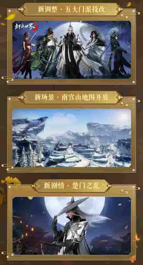 藏剑山庄,名剑出鞘!西山居2022年经典武侠新作《剑侠世界3》资料片“藏剑山庄”将于2月23日 09:00开启全平台上线,全新门派藏剑震撼出世,江湖风云再起、豪情重现;全新玩法侠侣系统甜蜜上线,与情缘定情江湖,浪漫结缘;全新地图南宫山重磅开启,新剧情楚门之乱徐徐展开,带来全新冒险;更有转职、转体型功能焕新来袭,且待群侠前来探索体验!