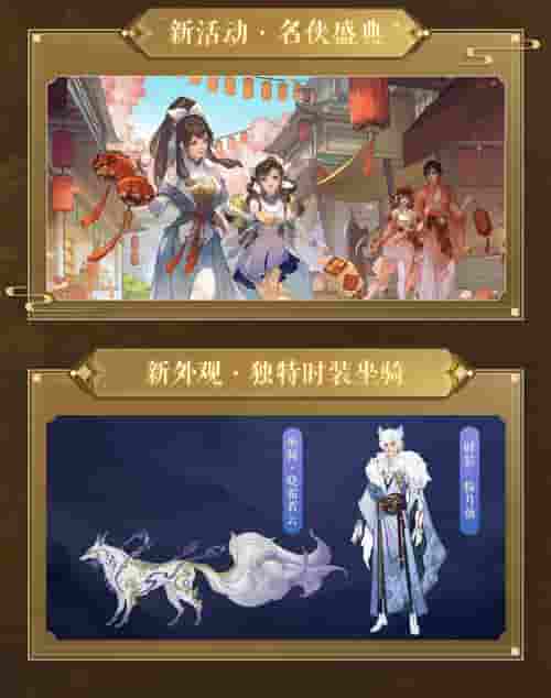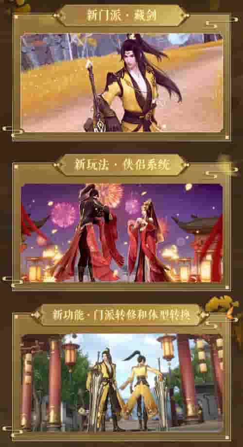 良辰好景,锦绣华堂,谨以白头之约,书向鸿笺,好将红叶之盟,载明鸳谱。万众期待的侠侣系统即将上线,少侠可在游戏内与心仪的TA结为侠侣。从“玫瑰定情”,到“筹办婚礼”“选择吉日”,再到“结缘仪式”,更有豪华“花车巡游”可供选择!同时,每一对喜结良缘的侠侣还将获得永久侠侣礼服和双人坐骑,仪式感满满!