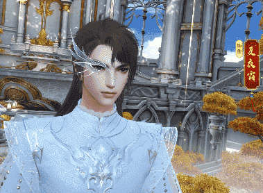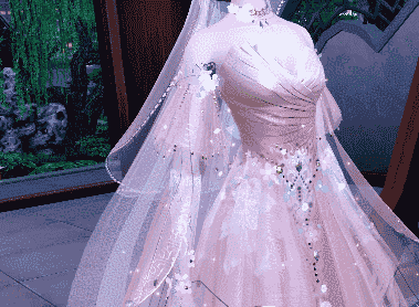 再来看看与之相配的男装,纯白的基调,浪漫而圣洁,长纱让时装整体更显温柔,银色的纹路又不失精致。想象一下,当他身穿这套礼服化身专属白马王子向你告白时,怦然心动就在这一刻!即便是成亲许久的CP,想必也能通过它重温新婚燕尔的甜蜜!