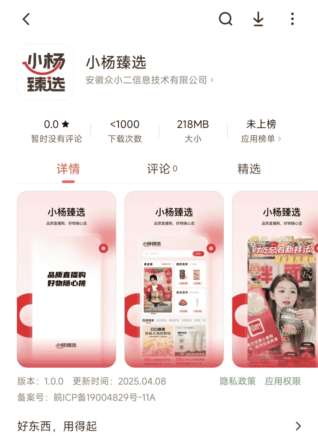值得注意的是,“小杨臻选”间也已在APP内复播,尽管初期观看人数有限,但主播透露未来所有活动都将转移至APP进行,大小杨哥等明星主播也将不定期现身间,为观众带来惊喜。