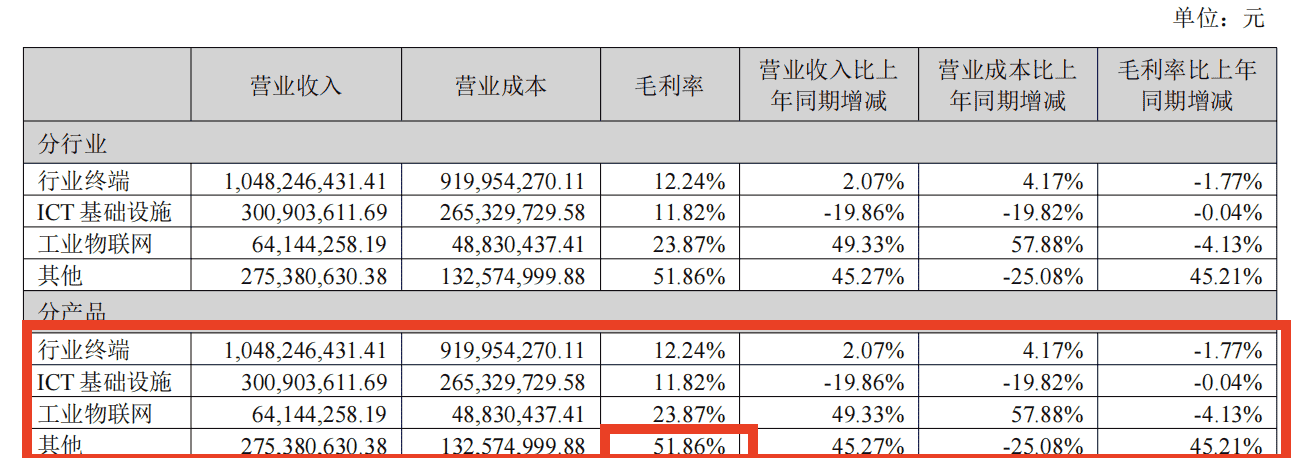 值得注意的是,尽管此次大手笔的算力服务器采购计划颇具冒险色彩,但智微智能已经初尝了算力相关业务的甜头。2024年,公司业绩出现好转,归母净利润同比增长220%-311%,盈利达到1.05亿元-1.35亿元。尽管公司整体三大业务板块的毛利率并未好转,但“其他”产品分类却异军突起,成为公司最赚钱的板块。根据公司的回复,这一分类毛利率的提升主要受到了新设立的算力子公司腾云智算的影响。