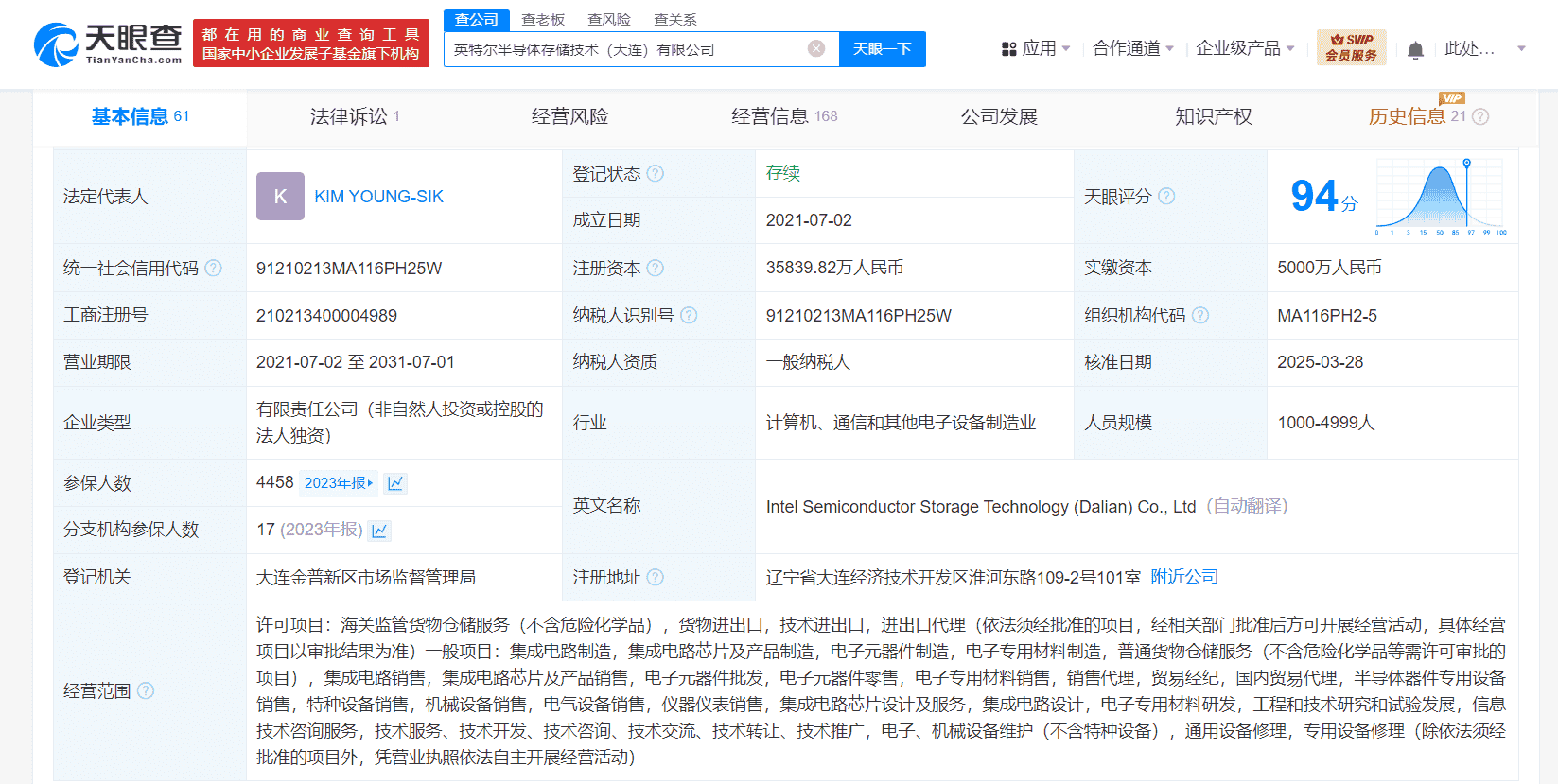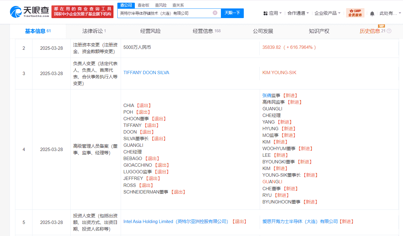 值得注意的是,这次收购和工商变更不仅影响了公司的股权结构和注册资本,还带来了管理层的变化。这些变动无疑将为英特尔半导体存储技术(大连)有限公司带来新的发展机遇和挑战。
