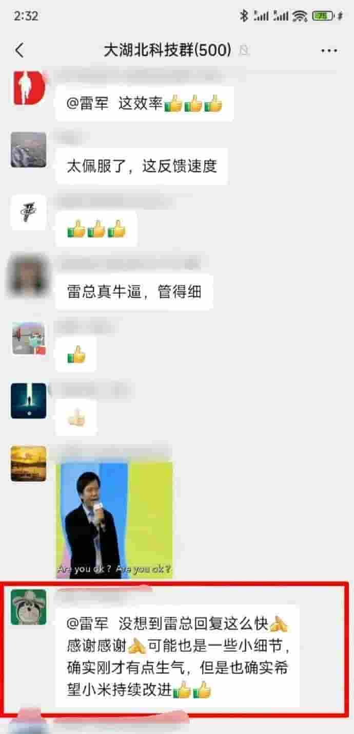 令人意想不到的是,雷军本人迅速注意到了这条吐槽,并亲自在对话中表达了歉意。他承认这是小米方面的安排不当,并承诺将立即着手改进。这一及时的回应让原本失望的用户感到意外和感激,他表示虽然这只是一些小细节,但确实希望小米能够持续改进。
