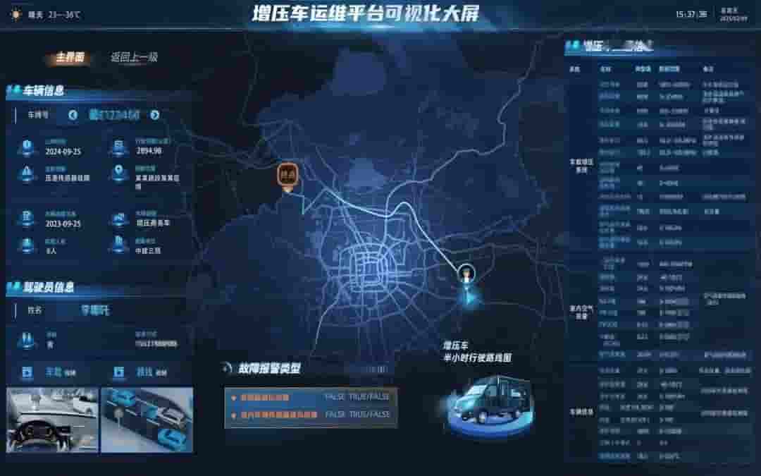 安全性能方面,增压车的车身采用了轻质高强结构与安全冗余设计,确保了其在碰撞时的高安全性,为乘员提供了全方位的保护。同时,车辆还接入了智慧监测平台,能够实时监控运行状态,实现全天候响应,进一步提升了行车安全性。
