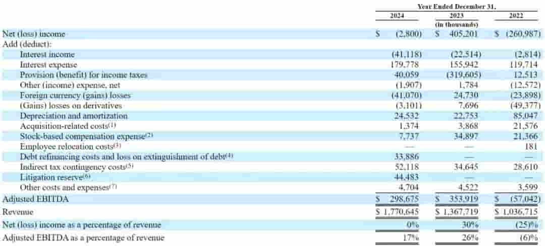 StubHub的调整后息税折旧及摊销前利润(Adjusted EBITDA)也呈现出积极的增长态势,从2022年的-5704万美元增长至2023年的3.54亿美元,再到2024年的3亿美元。