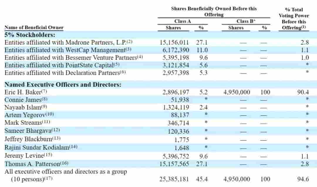 其他重要股东方面,Madrone Partners持有StubHub 27.1%的A类股以及2.8%的投票权;WestCap Management持有11%的A类股和1.1%的投票权;Bessemer Venture Partners则持有9.6%的A类股和1%的投票权。PointState Capital和Declaration Partners分别持有5.6%和5.3%的A类股。