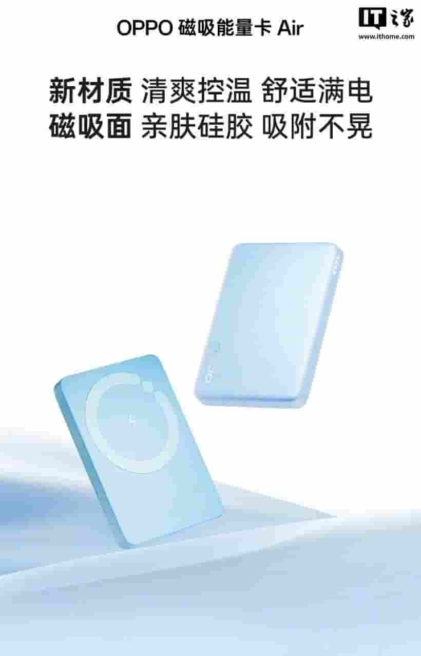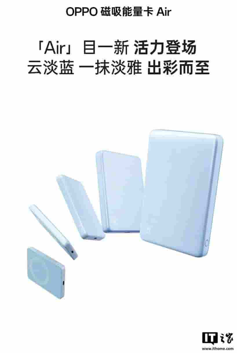 OPPO近日宣布,即将推出一款全新的磁吸能量卡Air移动电源,该产品定于4月10日正式亮相。这款移动电源搭载了5000毫安时的电池容量,据透露,其设计相较于目前在售的同类产品,将更加注重轻薄体验。