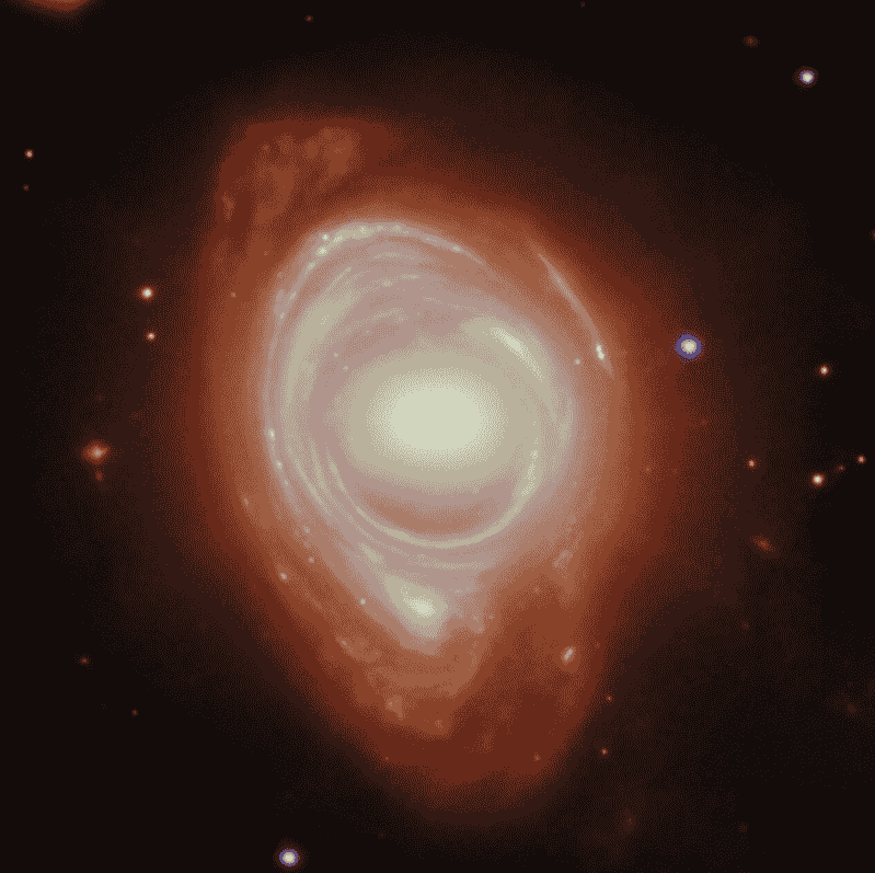 这张图像不仅展示了宇宙的壮丽景象,还为天文学家提供了一个宝贵的研究机会。图像中的椭圆星系被螺旋星系环绕的奇特结构,使得那些原本难以观测到的遥远且暗弱的星系得以被研究。这些星系可能因为距离过远或亮度过低而难以通过常规方法发现,但借助“爱因斯坦环”的引力透镜效应,它们的存在和特性得以揭示。