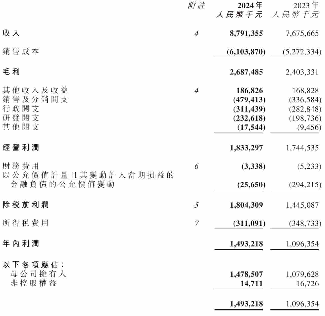 在费用支出方面,古茗控股的销售及分销开支、行政开支以及研发开支均有所增长。其中,销售及分销开支增长了42.4%,达到4.79亿元;行政开支增长了10.1%,为3.11亿元;研发开支则增长了17%,达到2.32亿元。这些增长反映了公司在市场拓展、内部管理以及产品创新方面的持续投入。