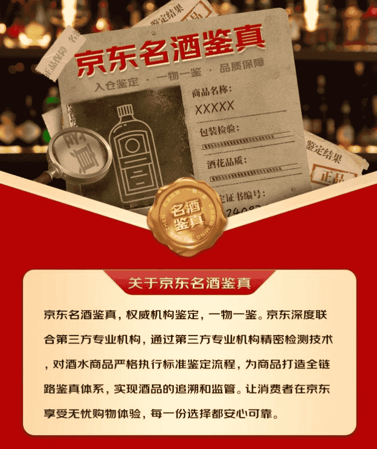 京东超市还设立了品质实验室,对自营酒品进行严格的质检测评。同时,他们还联合了业内顶尖的第三方权威鉴定机构,从多个方面对酒品进行鉴真,包括瓶身、封口封膜、酒花酒液、防伪标、喷码、批次等,重塑了行业的服务标准。