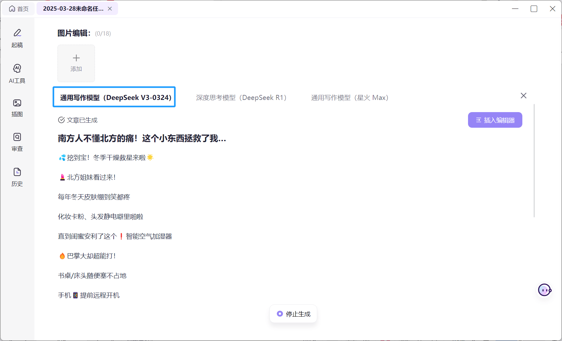 面对这些行业痛点,讯飞绘文在3月27日推出了重大升级,旨在通过DeepSeek V3-0324模型与思维链式模块化创作流的结合,为创作者提供更为流畅的创作体验。这一升级不仅巩固了讯飞绘文从选题创作到多平台分发的一站式闭环创作路径,更引领了AI创作工具向系统化智能的新阶段迈进。