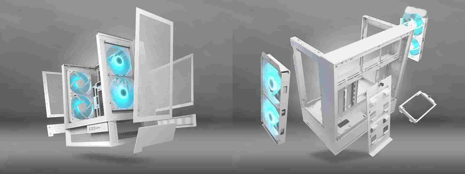 在模块化设计方面,OmnyX机箱同样表现出色。风扇支架、硬盘支架、电源支架等部件均支持拆卸,多面配备了可拆防尘网,方便用户进行清洁和维护。同时,部分面板还可以更换为其他材质和风格,为用户提供了个性化的定制选项。