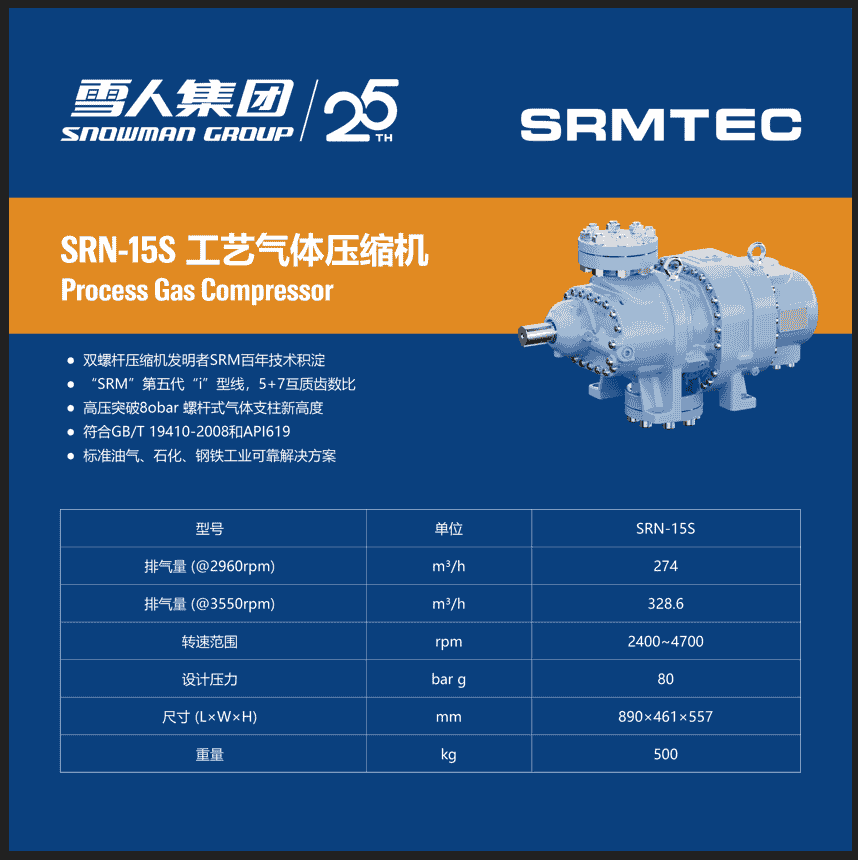 在天然气和煤层气的开采过程中,混合开采物需经气举压缩机增压后输送至地面,再进行分离和提纯。这一环节对气举压缩机的排压要求极高,需达到5至8MPa,排量则需满足1000至1200立方米/小时。雪人集团此次推出的SRM TEC压缩机,正是以技术创新推动深层气资源的高效利用,助力客户大幅缩短开采周期,抢占市场先机。