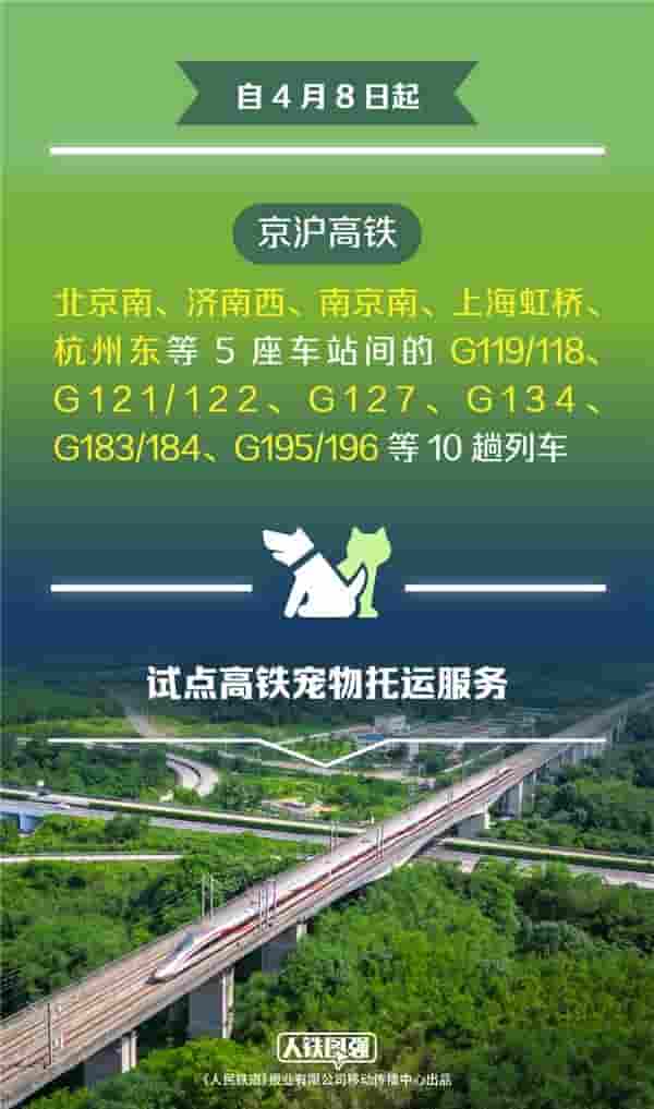 中国铁路近日宣布了一项新服务,自4月8日起,京沪高铁部分车次将试点高铁宠物托运业务。这一消息对于众多携带宠物出行的旅客来说,无疑是一个好消息。