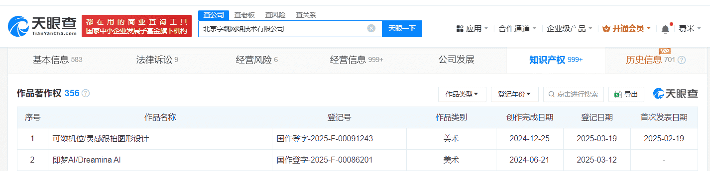 字节跳动新动向:正式登记即梦Dreamina AI作品著作权
