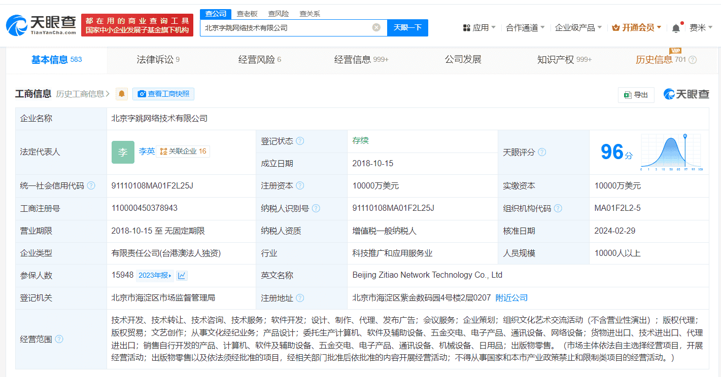 成立于2018年10月的北京字跳网络技术有限公司,其法定代表人为李英,注册资本为1亿美元。公司的经营范围广泛,涵盖了会议服务、企业策划以及版权代理等多个领域。值得注意的是,该公司由抖音集团(香港)有限公司全资控股,显示了其在互联网领域的强大背景和实力。