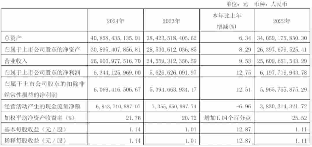财报亮点显示,海天味业2024年全年营收达到269亿元,与上一财年同期的245.59亿元相比,增长了9.53%。这一增长反映出公司在调味品市场的持续竞争力和稳健发展。