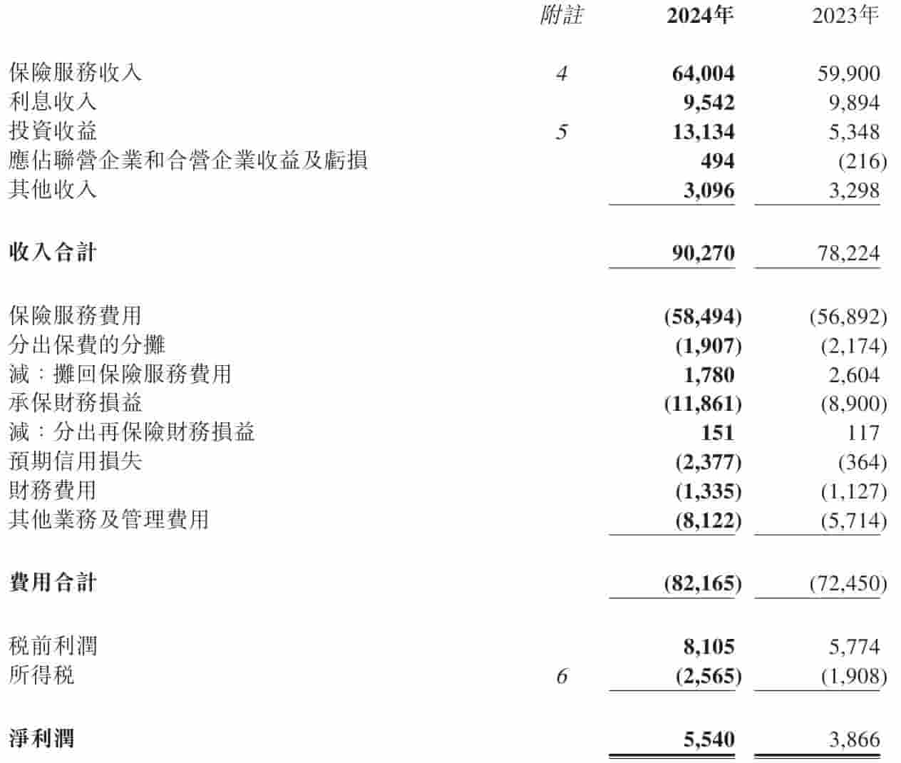 在具体业务方面,阳光保险的保险服务收入在2024年达到了640亿元,同比增长6.9%。与此同时,公司的利息收入为95.42亿元,投资收益更是高达131.34亿元。这些数据显示出公司在保险主业上的扎实基础和多元化投资战略的成功。