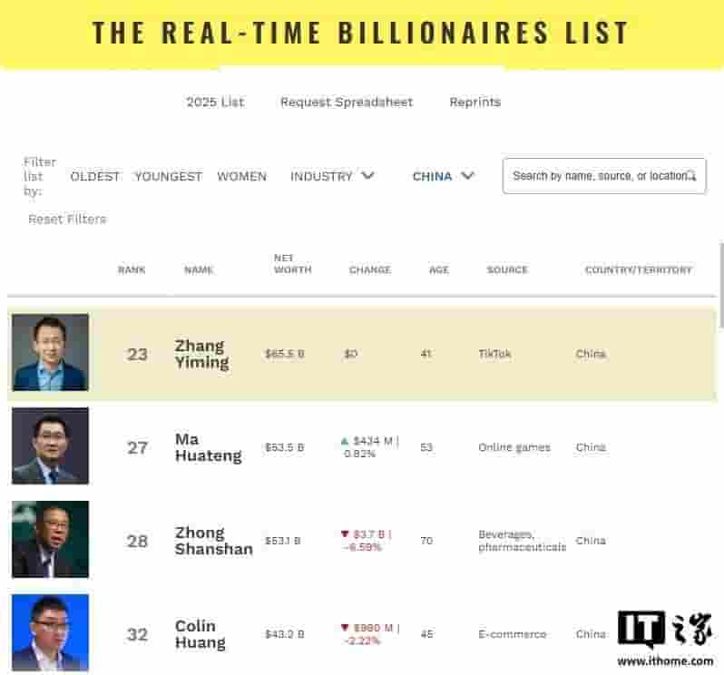 值得注意的是,马化腾和钟睒睒在彭博亿万富豪指数的排名中也紧挨着张一鸣,分别占据第25位和第26位。这一排名变动不仅反映了中国富豪榜的激烈竞争,也凸显了张一鸣作为新兴富豪的强劲势头。