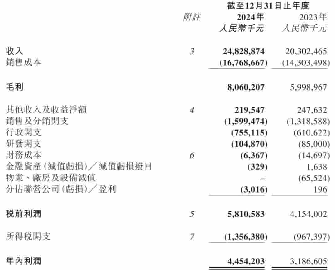 毛利方面,蜜雪冰城在2024年实现了80.6亿元的毛利,同比增长高达34.4%。同时,公司的毛利率也从上年同期的28.8%提升至31.6%,这进一步证明了公司在盈利能力上的提升。