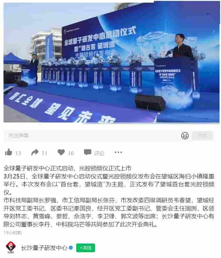 国产光腔锁频仪亮相!长沙全球量子研发中心正式启动运营