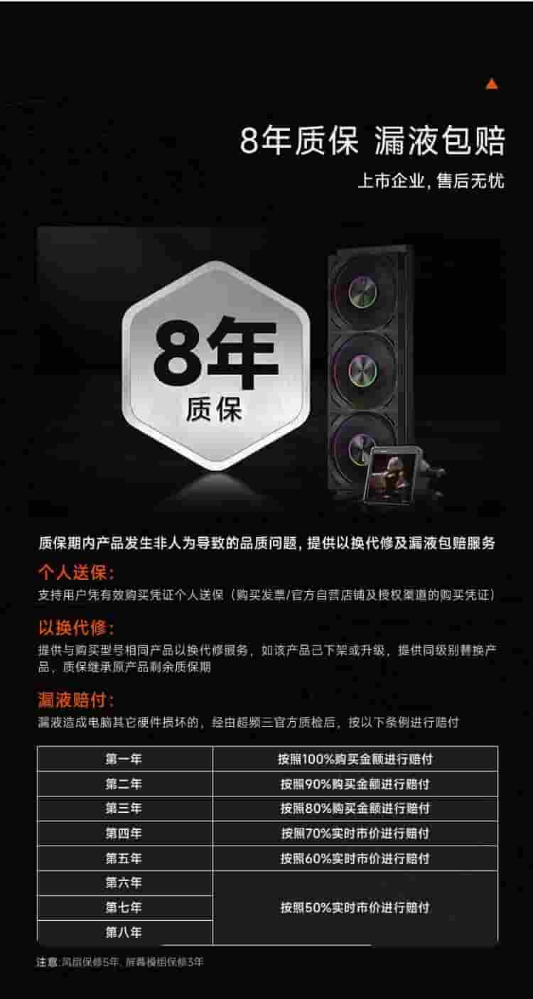 超频三银翼 DT360 ARGB Display 还随附了EX90导热膏,兼容英特尔LGA 115X/1200/1700/1851和AMD AM4/AM5平台。它还提供了8年质保和漏液赔付服务,让用户在使用过程中更加安心。