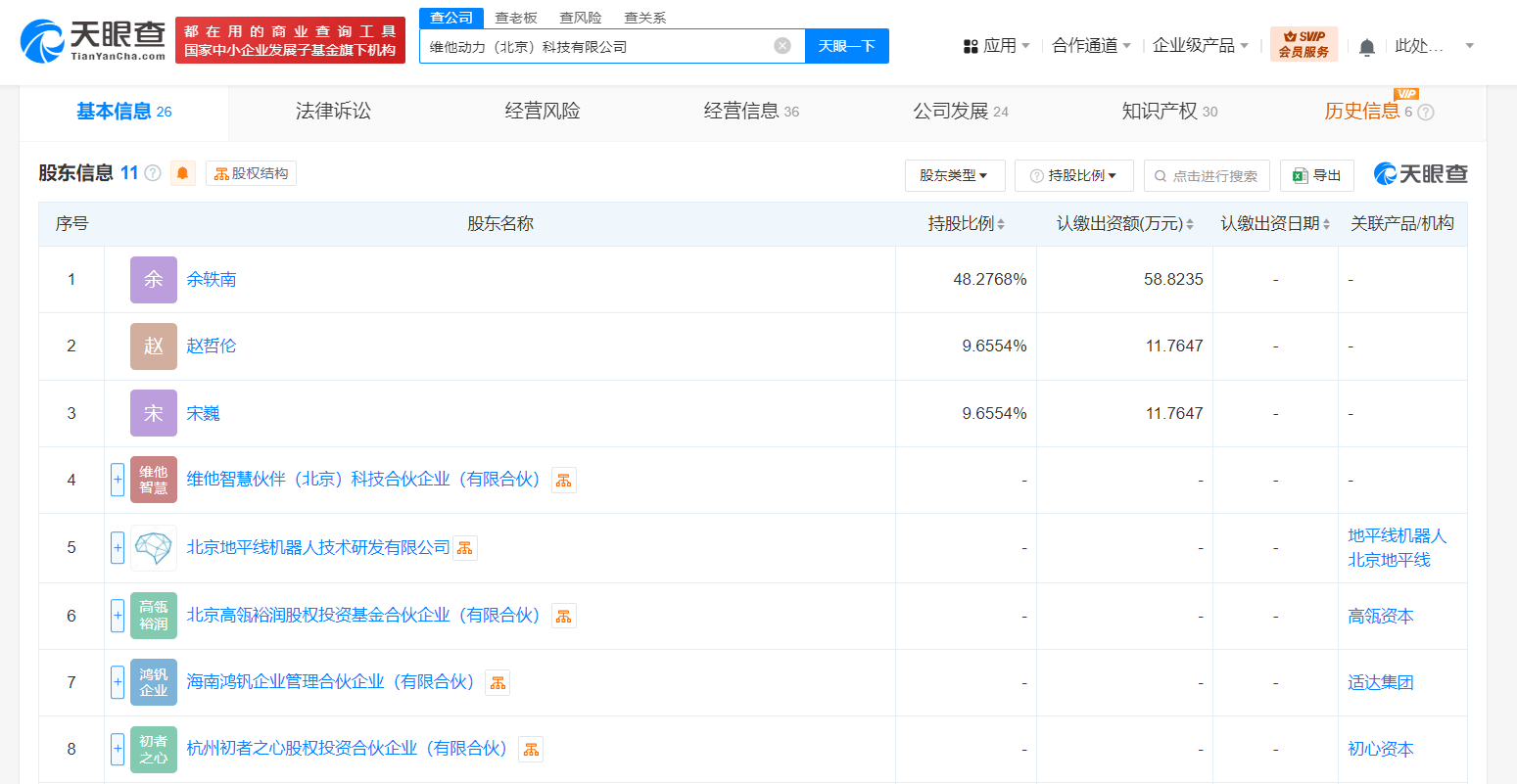 近期,维他动力(北京)科技有限公司的工商信息发生了显著变动,引入了多家实力雄厚的新股东。根据天眼查App的数据,北京地平线机器人技术研发有限公司、北京高瓴裕润股权投资基金合伙企业(有限合伙)以及百度旗下的三亚百川致新私募股权投资基金合伙企业(有限合伙)等,均已成为维他动力的新股东。